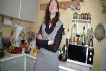 تمزق خادمة طويلة الأرجل في سكسي قديم مترجم جوارب بيضاء من قبل لقيط في المطبخ.12:03